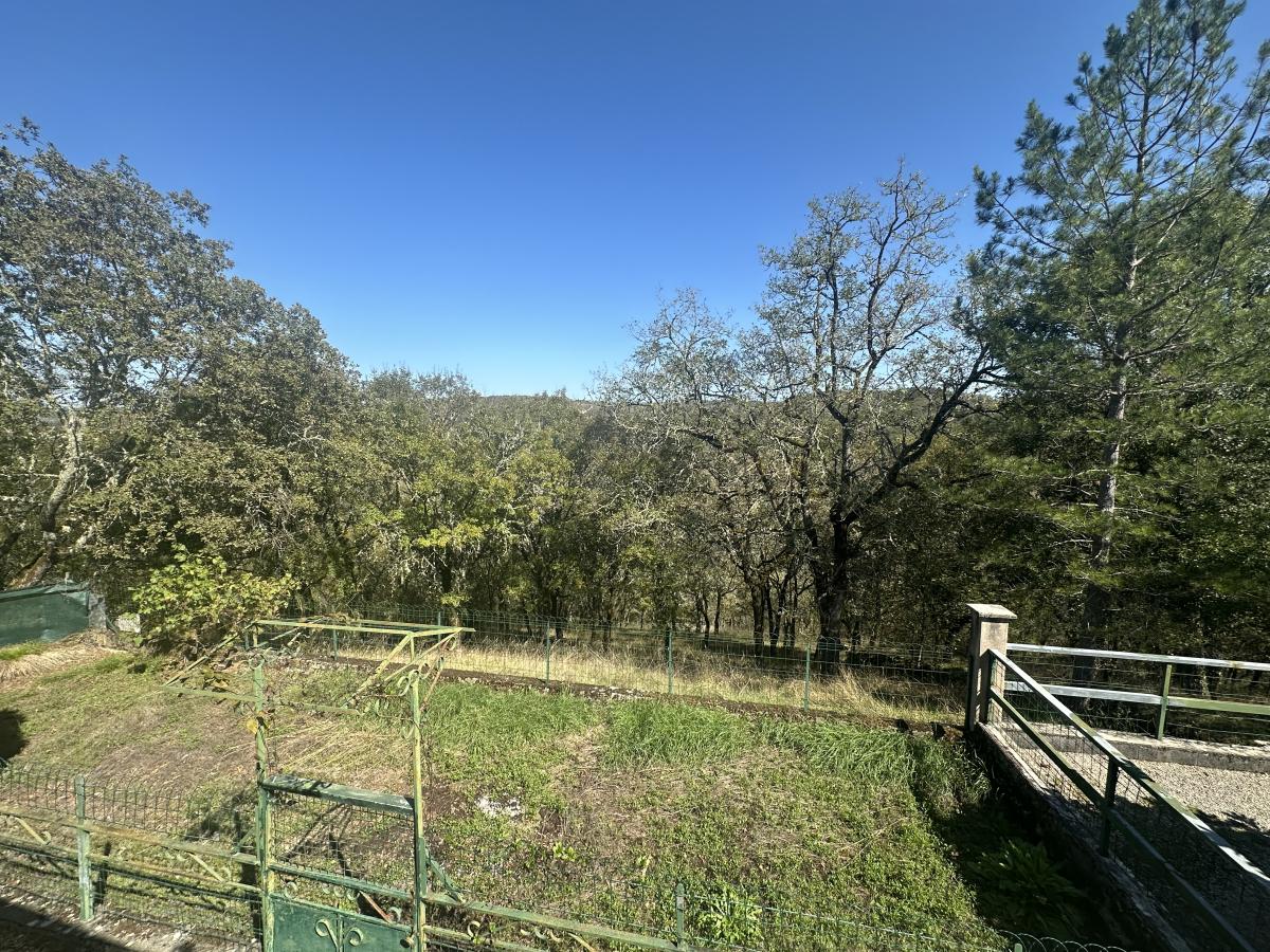 Le terrain plat autour de la maison facilite l’entretien et offre un bel espace extérieur, tandis que la parcelle s’étend ensuite sur une partie plus pentue.
